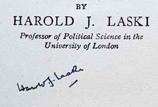 Liberty in the Modern State - by Harold J Laski, published in 1930 by Harper & Brothers, New York and London. This is a nice association copy of Laski’s book, dedicated to Siegfried Sassoon, dated, 30.4.30, and carrying the dispersal label confirming it was from Sassoon’s own library.