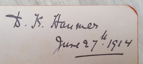 Siegfried Sassoon met ‘Bobbie’ Hanmer and his cousin Dorothy while riding with the Atherstone Hunt before the war. Although he was deeply attracted to Bobbie, Sassoon never did develop a relationship with him. However, Dorothy was attracted to Sassoon and in an effort to get close to Bobbie he was happy to cultivate a friendship with her. For reasons best know to Sassoon, (but being naive he probably just didn't see it coming), he eventually found himself unofficially engaged to Dorothy who had fallen in love with him. Finally coming to his senses Sassoon realised there was no future for Dorothy with him, in his diary (July 16th 1916) he wrote: “I must go into the night alone. No fat settling down; the Hanmer engagement idea was a ghastly blunder-it wouldn’t work at all. That charming girl who writes to me so often would never be happy with me. It was my love for Bobbie that led me to that mistake.” As can be seen from the inscription above, this book once belonged to Dorothy Hanmer, it bears her signature and the date, June 27th 1914. I came across this book quite by chance and am delighted to add it to my website to fill in that small gap in Sassoon’s life.